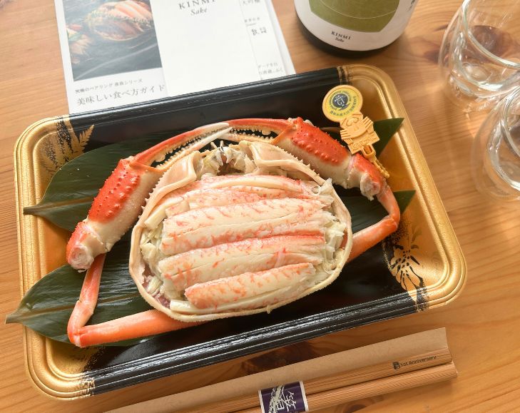 カニ料理を引き立てる日本酒「KAMOGATA」は、お米の香りとなめらかな喉越しが越前ガニの濃厚な旨味にぴったり寄り添ってくれていました。