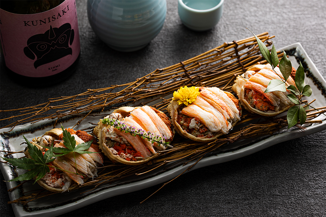 カニ料理を引き立てる日本酒「KAMOGATA」は、お米の香りとなめらかな喉越しがセイコガニの濃厚な旨味にぴったり寄り添ってくれていました。