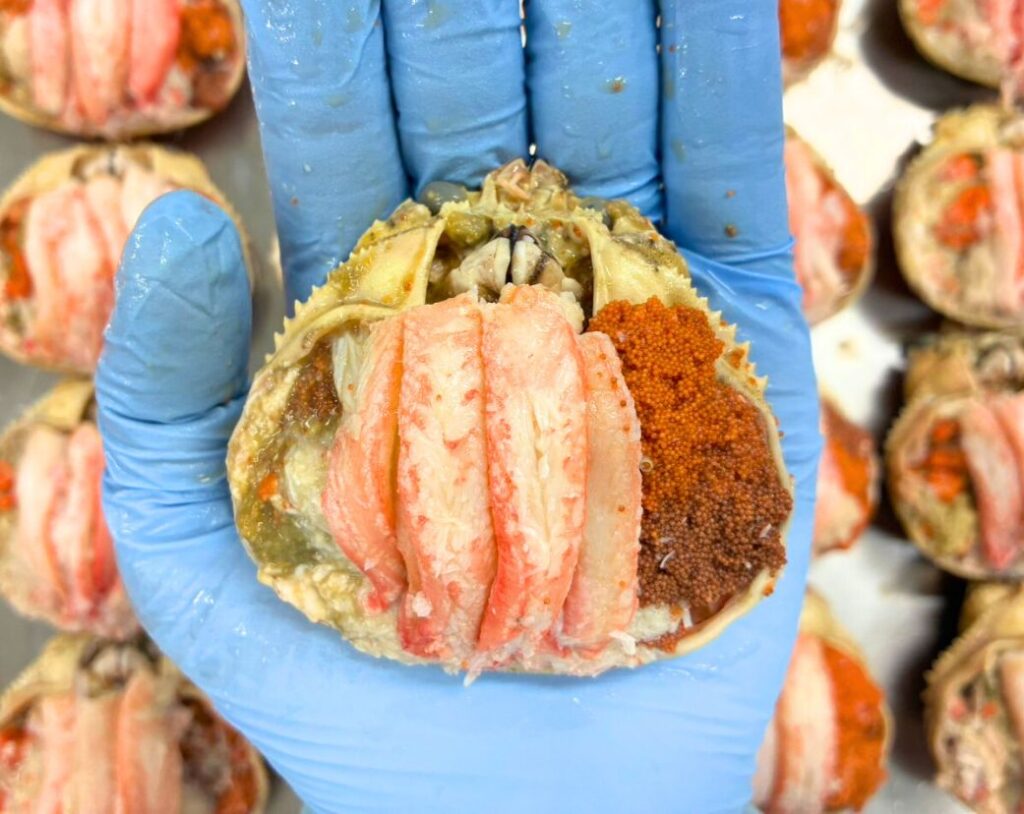 特に、濃厚な「内子(卵巣)」やプチプチ食感の「外子(卵)」、カニ味噌が織りなす極上のハーモニーが魅力です。